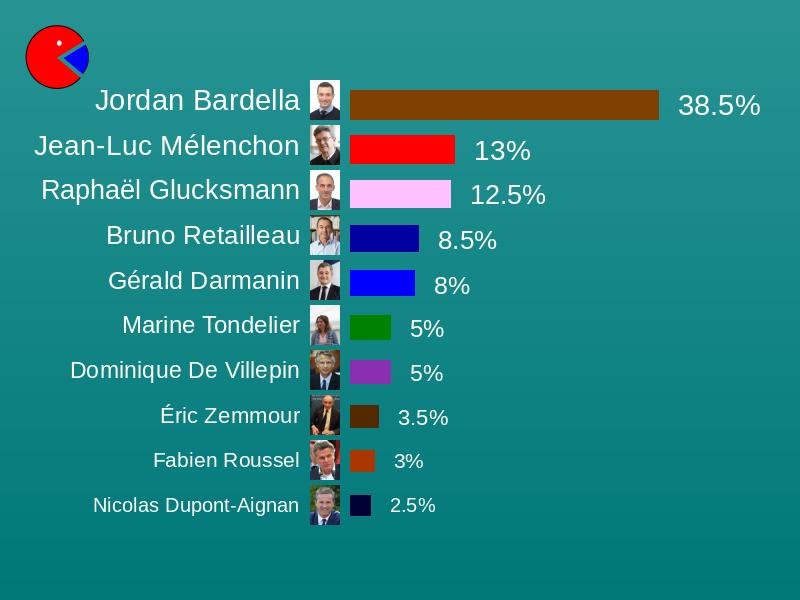 | Glucksmann Raphaël | Place Publique | 12.5% |